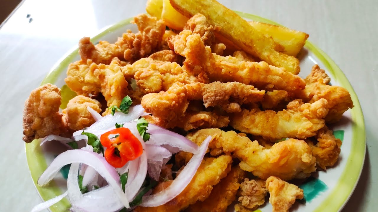 El chicharrón de pota es una delicia marina muy popular en la costa del Perú, elaborada con tiras de pota (también conocida como calamar gigante), previamente sazonadas con especias tradicionales y luego empanizadas y fritas hasta lograr una textura dorada y crujiente. Se suele servir acompañado de yuca frita, sarza criolla y una crema picante o mayonesa, siendo una opción económica, nutritiva y sabrosa dentro de la comida marina peruana.