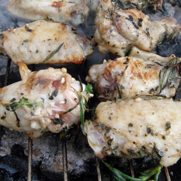 Alitas doradas al carbón, jugosas por dentro y llenas de sabor.